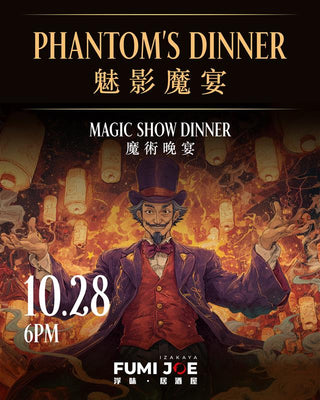 On October 28, step into Fumi Joe for a one‑night‑only 6‑course fine‑dining experience that blurs the line between illusion and indulgence. Every dish is a story, every bite a mystery—crafted with the spellbinding touch of Hong Kong’s master chefs. Come hungry. Leave enchanted.